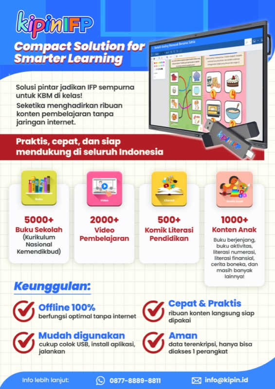 solusi memberdayakan sebuah IFP, menyediakan ribuan konten berupa buku & video dalam seketika bisa ditampilkan di layar tanpa membutuhkan jaringan internet (pasti jalan dipakai diseluruh lokasi di Indonesia)