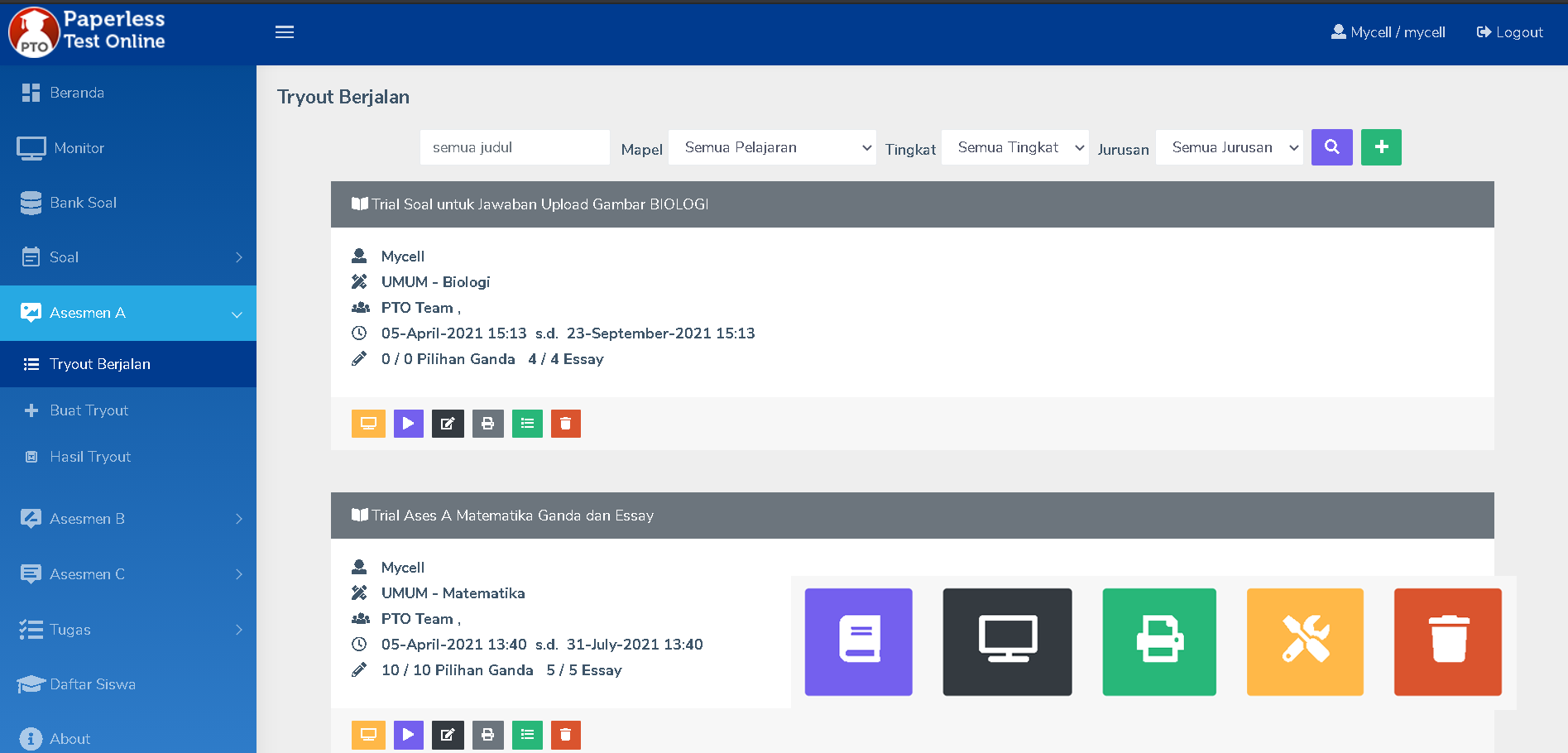 Data history ujian tersusun rapi, lengkap dengan data data pendamping lainnya seperti peserta ujian, hasil dan analisa hasil ujian
