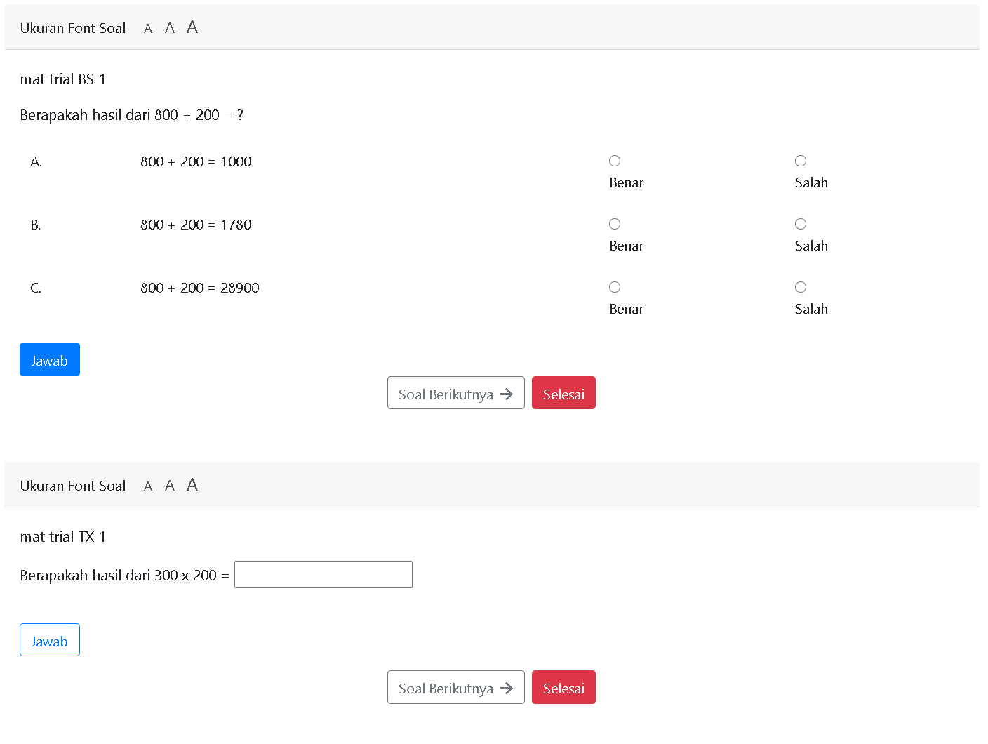 Pada nomor soal yang sama di ujian yang sama, antara siswa satu sama lain mendapatkan soal yang berbeda sehingga meminimalisir kemungkinan siswa bekerja sama satu sama lain.